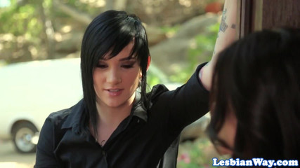 Strapon fucked lesbo pleasured by goth dyke