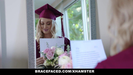 Blonde slut who just graduated gets a hard cock for present