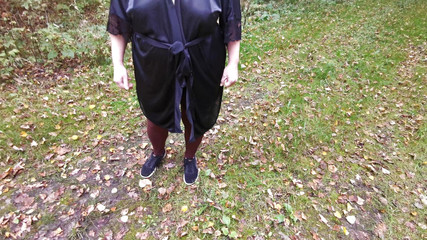 "Whipping her tits in satin robe outside"