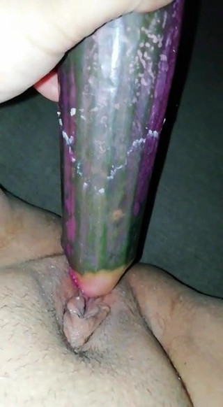 Fucked her pussy with a big cucumber