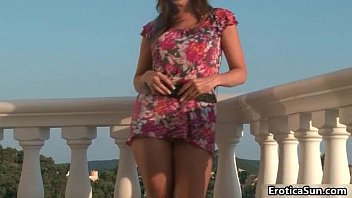 Bellissima italiana si affaccia dal balcone con le tette enormi