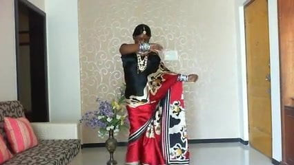Indian Bhabhi first time with red saree